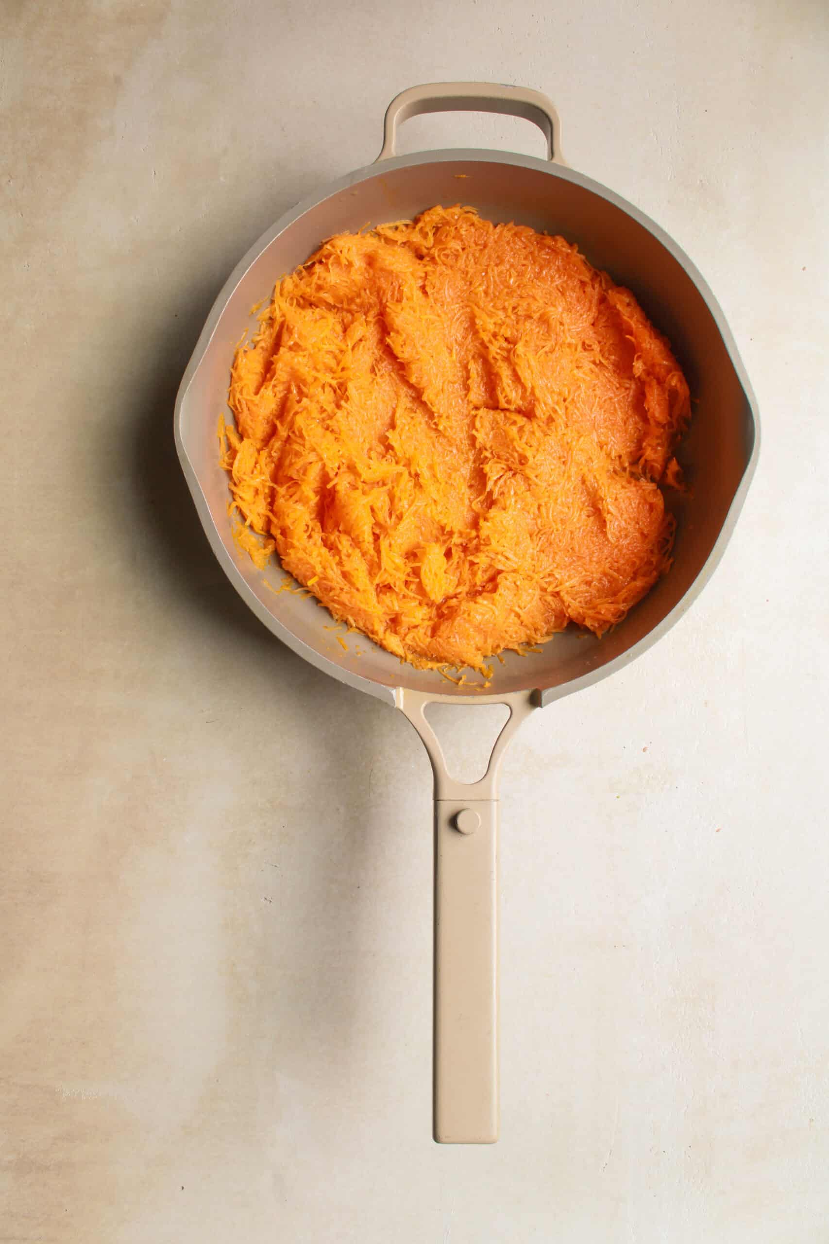- I shred the pumpkin using a box grater.